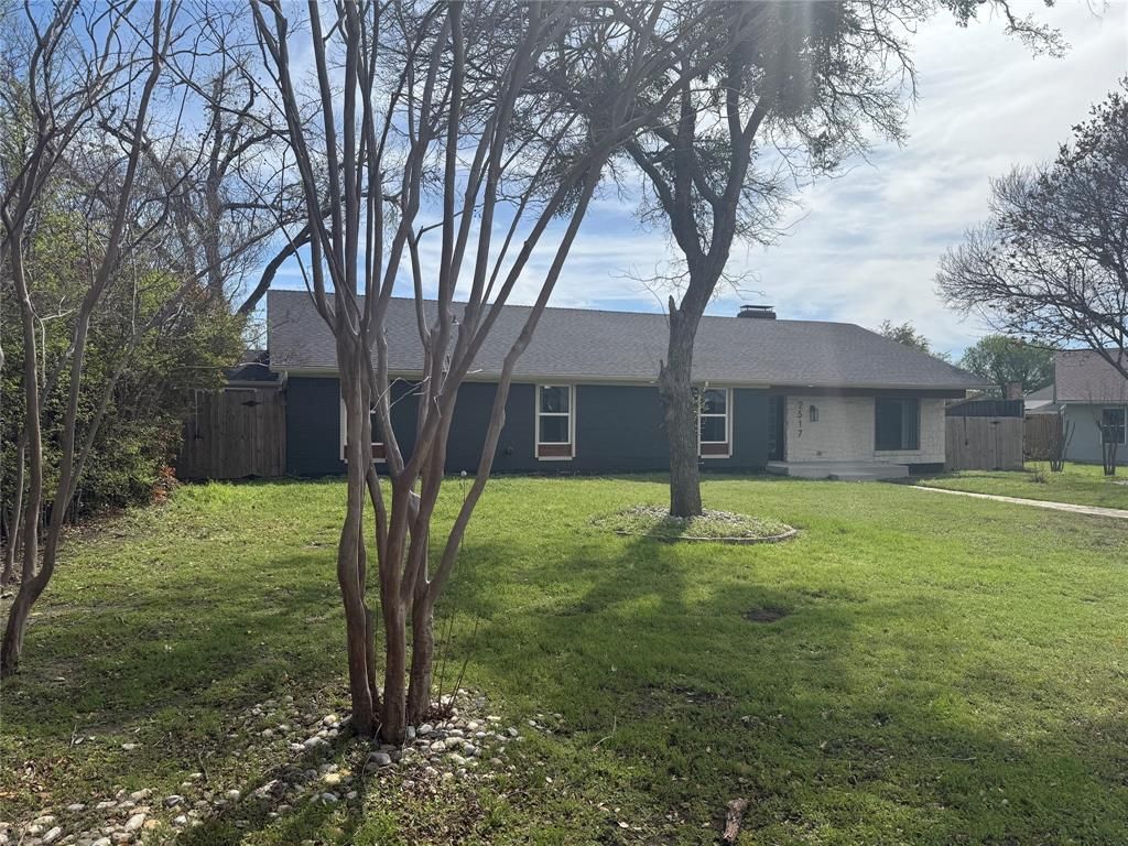 This spacious 2,843 square foot single-story home in Carrollton's Ridgecrest neighborhood offers 4 bedrooms and 3 bathrooms with an open and functional floor plan. The kitchen features modern appliances including dishwasher, microwave, oven, and refrigerator, along with a convenient breakfast bar and pantry for ample storage. The living areas showcase beautiful wood floors and include both a living room and family room, plus a formal dining room perfect for entertaining. A cozy fireplace creates a welcoming focal point, while ceiling fans and air conditioning ensure year-round comfort. The primary bedroom includes a spacious walk-in closet for excellent storage, and all three bathrooms are thoughtfully designed throughout the home. A dedicated laundry room houses the washer and dryer for added convenience. The property includes a 3-car garage with garage door opener and covered parking, providing exceptional vehicle storage and protection. Outside, you'll find a fenced yard with grass and a patio area ideal for outdoor relaxation and activities. The home features a mix of flooring including wood, tile, and carpet for both style and practicality, with blinds throughout for privacy. Located in the desirable Ridgecrest neighborhood, this property offers easy access to parks and trails for outdoor recreation. Dogs are welcome with certain restrictions, making this an ideal home for families seeking space, comfort, and convenience in a well-established Carrollton community with excellent access to Dallas area amenities.