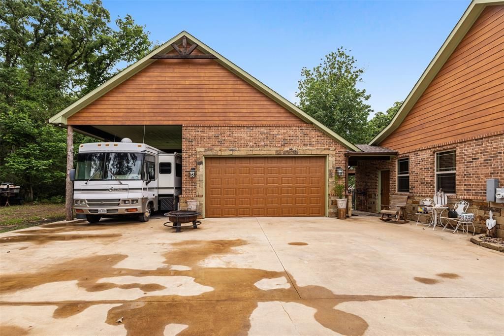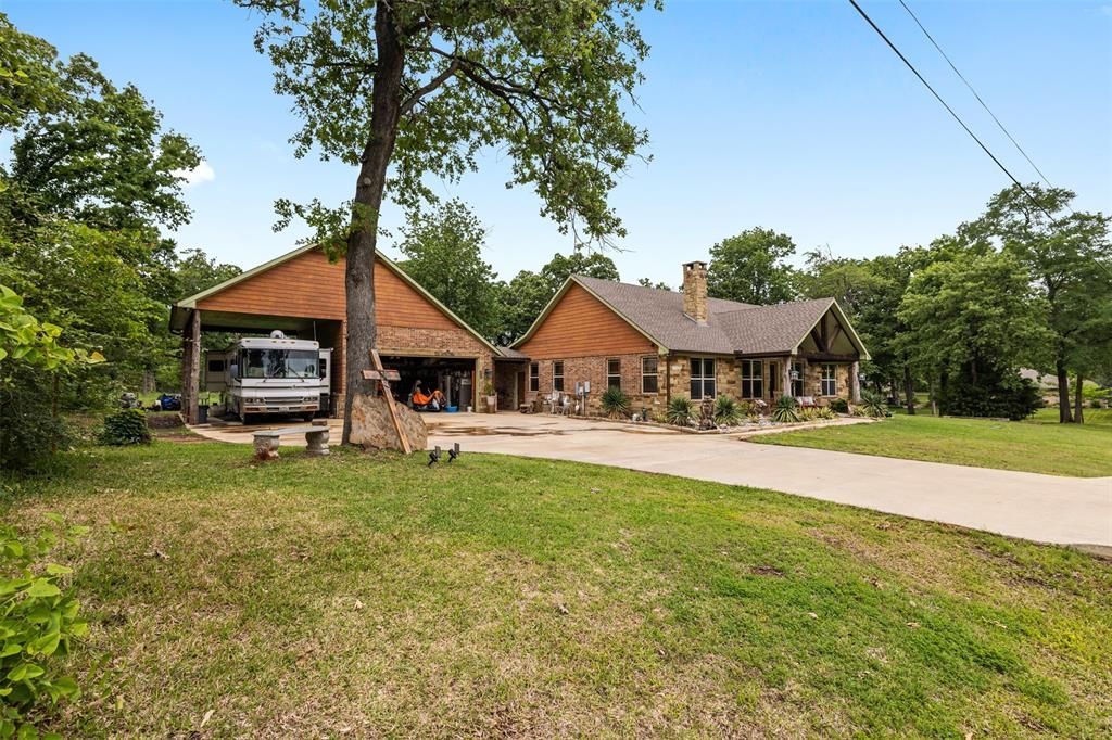 Beautiful custom built home with stunning water views, featuring 4 bedrooms and 3 baths on two quiet lots in a desirable gated community. This spacious home showcases Oklahoma stack stone, tile floors, a vaulted ceiling, cozy fireplace, and rich woodwork throughout. The kitchen includes an island ideal for gathering, while sliding barn doors add character and charm.A large two-car garage and covered motorhome parking with utility hookups provide plenty of space for vehicles, hobbies, and storage. The fenced backyard is perfect for relaxing or entertaining, complete with a covered porch and a gorgeous gazebo. Strong curb appeal shines with a covered front porch and tasteful landscaping. Seller offering $10,000 in concessions toward buyer’s closing costs, adding exceptional value to this remarkable property that blends privacy, elegance, and scenic water views.