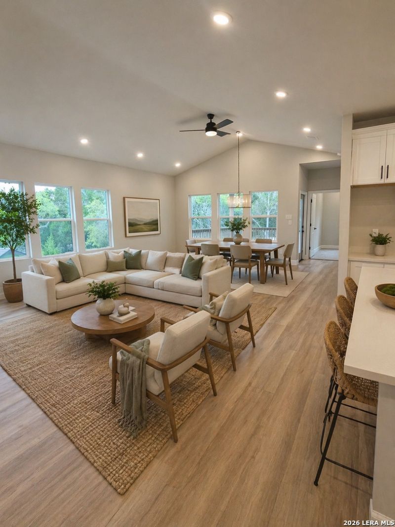 Welcome to 7205 Exeter - This is a 4 beds, 3 baths and 2 bonus rooms. A brand-new Hill Country home perched high on a hill at the end of a long private driveway. Located in the desirable Whispering Hills community, this move-in-ready home (available late March / early April) offers the rare combination of privacy, elevation, and sweeping views. The extended driveway creates a dramatic sense of arrival, guiding you up to a home thoughtfully positioned to capture incredible long-range Hill Country views. From the kitchen, dining area, living room, and expansive back patio, youll enjoy breathtaking sunrises that fill the home with natural light and start each day with something truly special. Inside, the open-concept design maximizes both comfort and scenery. Large windows frame the rolling hills beyond, bringing the outdoors in while creating a bright, inviting atmosphere throughout the main living spaces. The kitchen, dining, and living areas flow seamlessly together - ideal for entertaining or simply relaxing while taking in the view. As a brand-new home, youll enjoy modern finishes, energy-efficient features, and the peace of mind that comes with new construction - all without the extended build timeline. Simply move in and start enjoying the lifestyle. Step outside onto the oversized back patio and experience peaceful mornings, cool breezes, and the tranquillity that only an elevated homesite can provide. Located in established Whispering Hills, youll enjoy a quiet Hill Country setting with convenient access to shopping, dining, schools, and major routes into San Antonio and the surrounding areas. Brand new. Elevated setting. Incredible views. Ready for move-in soon. 7205 Exeter offers true Hill Country living